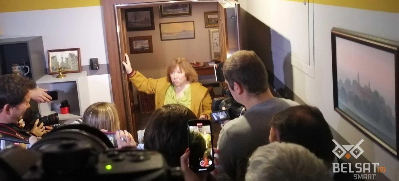 Около 11.00 стало известно, что в квартиру седьмого члена президиума КС, Нобелевского лауреата Светланы Алексиевич пытаются попасть незнакомые люди, а на ее телефон звонят незнакомые номера.