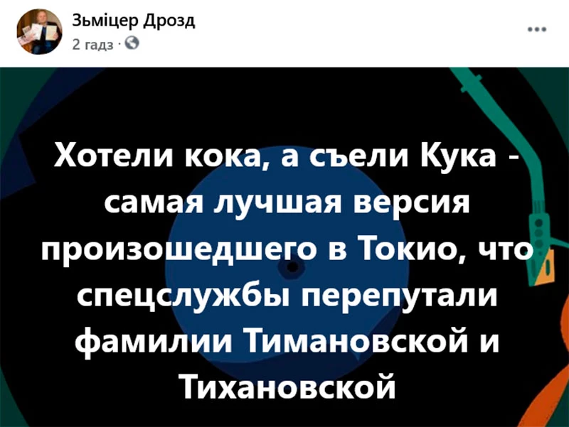 — Если бы спортивные чиновники любой другой страны, кроме Беларуси и, наверное, КНДР, решили довезти до аэропорта спортсмена, снятого с игр за разногласия со своим начальством, никто бы даже не обратил внимания. А в нашем случае всем даже в далекой Японии ясно, что может грозить Тимановской в стране-доноре европейской безопасности.