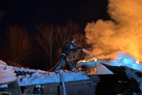 Сообщают о погибшей женщине в частном секторе — у нее сгорел дом. Также пострадали хозпостройки, автомобили и трамвайная линия.